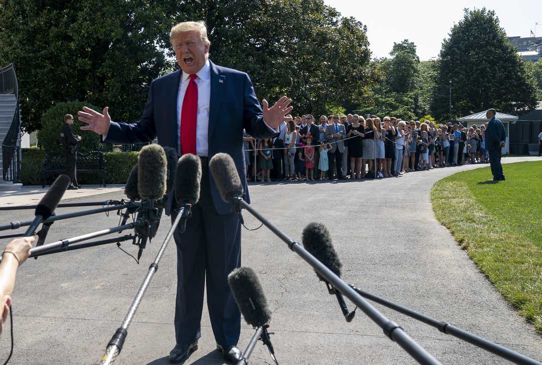 WASHINGTON – President Donald Trump defended a re-tweet that appeared to link Jeffrey Epstein’s death to former President Bill Clinton, and said Tuesday he wants a full investigation of Epstein’s apparent suicide.